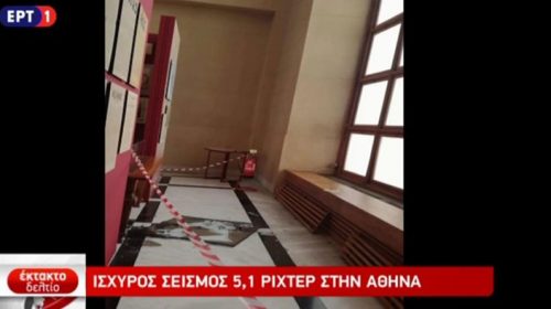 Ρωγμές έχουν εμφανιστεί στο κτίριο της βουλής, μετά τον ισχυρό σεισμό που σημειώθηκε το μεσημέρι στην περιοχή της Αττικής. Δείτε το βίντεο της ΕΡΤ: Δείτε επίσης: Σεισμός ταρακούνησε την Αθήνα Κατέρρευσε εγκαταλελειμμένο κτίριο στην Αθήνα Η στιγμή που ο εγκέλαδος «χτυπά» στην Αττική (Βίντεο) Τσελέντης: Εκτιμώ ότι ήταν ο κύριος σεισμός