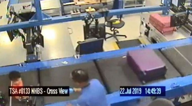 Το βίντεο από κάμερα ασφαλείας του αεροδρομίου δείχνει το πώς το αγόρι σκαρφάλωσε στον ιμάντα και παρασύρθηκε στον χώρο αποθήκευσης των αποσκευών.