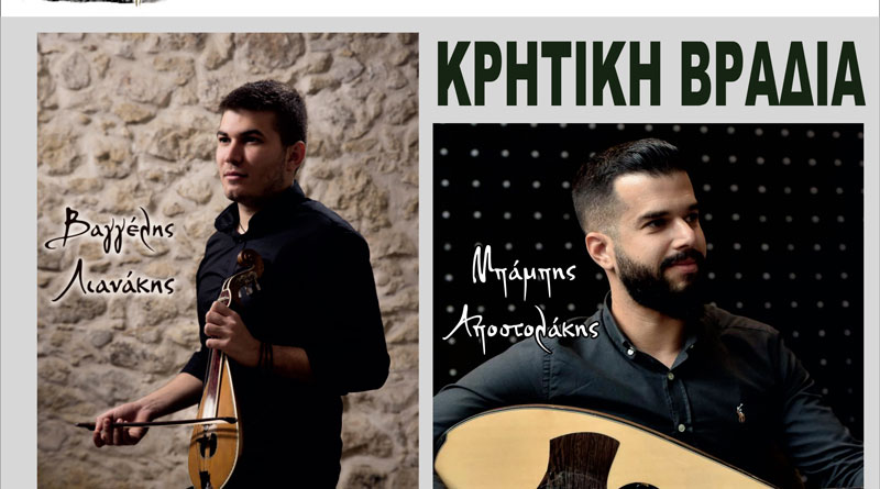 -03/08/2019 Κρητική βραδιά με τους: Αποστολάκη Μπάμπη και Λιανάκη Βαγγέλη .