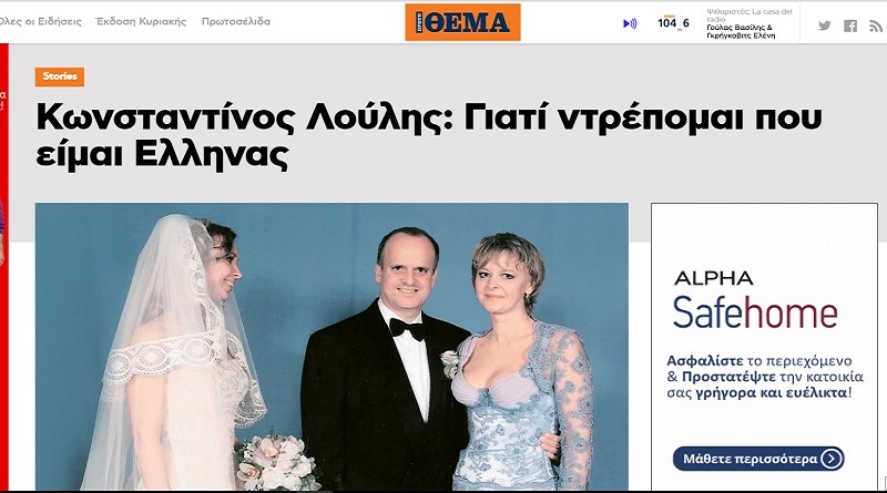 Όπως κάθε περίεργη μορφή στον τόπο αυτό, ο Κωνσταντίνος Λούλης έχει δει να του γίνονται αφιερώματα από το “Πρώτο Θέμα”. Σε ένα από αυτά, το καλοκαίρι του 2013, μαθαίναμε ότι ο σημερινός κυβερνητικός παράγοντας και θαυμαστής της χούντας, ντρεπόταν που ήταν Έλληνας!