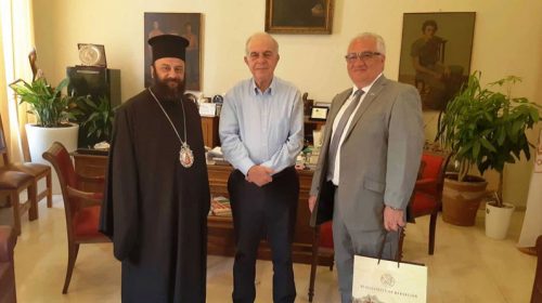 Με τον Μητροπολίτη Νέας Ζηλανδίας, υπέρτιμο και έξαρχο Ωκεανίας, κ. Μύρωνα και με τον Επίτιμο Πρόξενο Νέας Ζηλανδίας κ. Γιώργο Νεονάκη συναντήθηκε σήμερα, Τρίτη 30 Ιουλίου 29019, ο Δήμαρχος Ηρακλείου κ. Βασίλης Λαμπρινός. Η εθιμοτυπική συνάντηση πραγματοποιήθηκε στην Λότζια και ο Δήμαρχος συζήτησε μαζί τους θέματα εκκλησιαστικού και κοινωνικού χαρακτήρα.