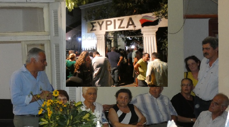 Πολύς κόσμος συγκεντρώθηκε στα γραφεία του ΣΥΡΙΖΑ το βράδυ της Παρασκευής, στη συγκέντρωση που οργανώθηκε με αφορμή την επίσκεψη και ομιλία του γραμματέα της ΚΕ, Πάνου Σκουρλέτη και τη συμμετοχή του Παύλου Πολάκη.
