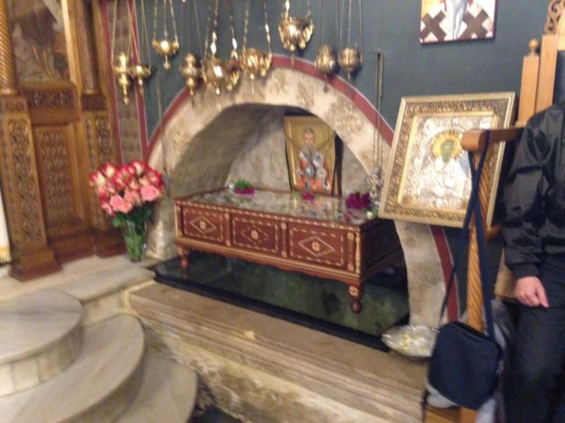 Μετά την ανακομιδή των λιψάνων Του το 2014 στον χωρο του τάφου εχει τοποθετηθεί λειψανοθήκη  με τα οστα του Αγίου.