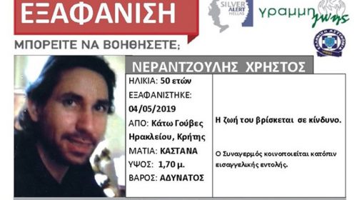 Read MoreSilver Alert για 50χρονο που εξαφανίστηκε στο Ηράκλειο