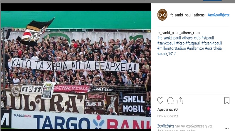 Με πανό στα ελληνικά, οι οργανωμένοι οπαδοί της γερμανικής Ζανκτ Πάουλι πήραν θέση για το ζήτημα των Εξαρχείων.
