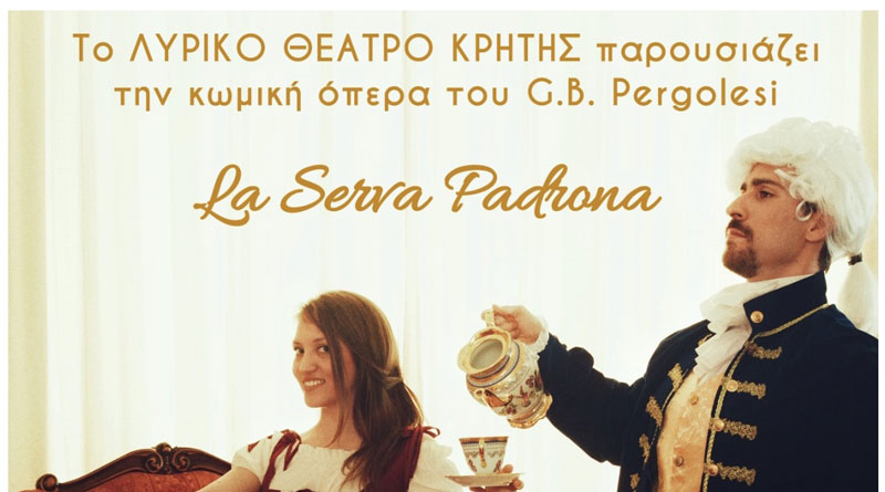 To Λυρικό Θέατρο Κρήτης σε Συνδιοργάνωση με την Περιφέρεια Κρήτης παρουσιάζει την Τρίτη 20 Αυγούστου 2019 στην Πύλη Βηθλεέμ την κωμική όπερα του G. B. Pergolesι “La Serva Padrona”.