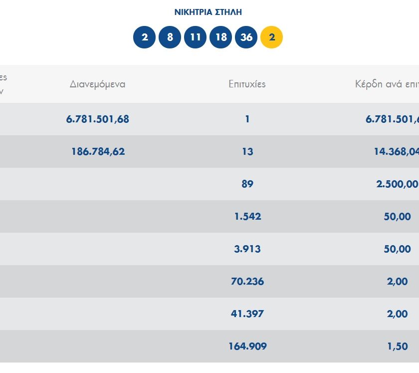 Το υπερτυχερό δελτίο που κέρδισε τα 6,7 εκατ. ευρώ στην κλήρωση της Κυριακής κατατέθηκε μέσω της ιντερνετικής πλατφόρμας του ΟΠΑΠ. Το μοναδικό δελτίο που βρέθηκε στην 1η κατηγορία (5+1) στην κλήρωση του Τζόκερ, κερδίζει το ποσό των € 6.781.501,68, ενώ στο ποσό αυτό θα πρέπει να προσθέσουμε και τα ποσά από τις εννέα επιτυχίες στη 2η κατηγορία (5), με την κάθε μία να κερδίζει από € 14.368,04.