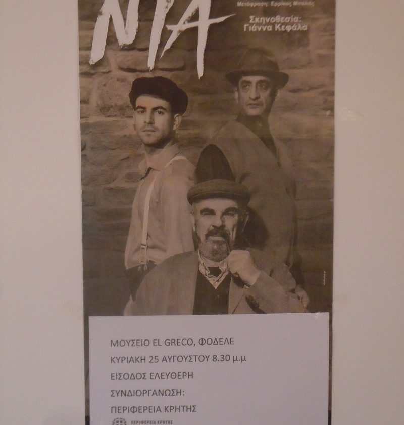 Ο Πολιτιστικός Σύλλογος του Φόδελε ‘’Δομήνικος Θεοτοκόπουλος’’ οργανώνει την παράσταση ‘’ΝΤΑ’’ του Θεάτρου ΜΟΡΦΕΣ την Κυριακή 25 Αυγούστου, στις 8.30 μμ, στον υπέροχο χώρο του Μουσείου του El Greco.