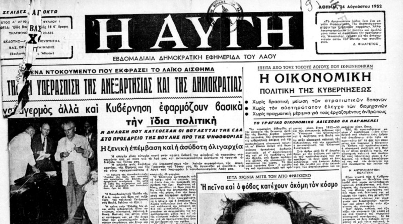 Δύσκολα τα χρόνια εκείνα, δεν είναι και πολύ πανηγυρικό το πρώτο φύλλο. Η Αυγή αρχικά κυκλοφορούσε κάθε Κυριακή, αλλά από τον Οκτώβριο αν θυμάμαι καλά, ενόψει και των εκλογών του Νοεμβρίου, μετατράπηκε σε ημερήσια, πρωινή. Η δικτατορία της 21ης Απριλίου 1967 έκλεισε την εφημερίδα και κατέστρεψε το αρχείο και τις εγκαταστάσεις της. Επανεκδόθηκε λίγες μέρες μετά τη μεταπολίτευση, στις 4 Αυγούστου 1974 και συνεχίζει ως σήμερα, που οι καιροί έχουν γίνει δύσκολοι για εφημερίδες.