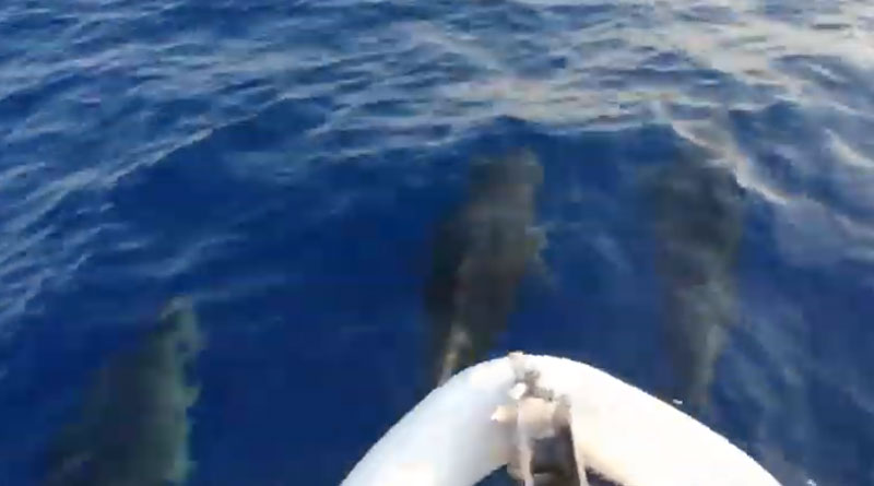 Δίπλα από το σκάφος του Γιώργου Σαρειδάκη τον ακολουθούσαν στα καταγάλανα νερά της περιοχής και έδειξαν για ακόμη μια φορά πόσο φιλικά είναι με τον άνθρωπο και δεν διστάζουν να κολυμπήσουν δίπλα στα σκάφη και να «παίξουν» μαζί μας.
