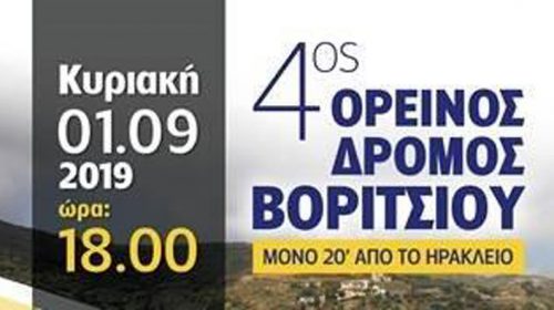 Για 4η συνεχόμενη χρονιά ο Πολιτιστικός Σύλλογος Βοριτσίου «Η ΑΓΙΑ ΜΑΡΙΝΑ» διοργανώνει – φέτος σε συνδιοργάνωση με την Περιφέρεια Κρήτης- Π.Ε. Ηρακλείου , μια αθλητική -πολιτιστική εκδήλωση, η οποία θα λάβει χώρα την πρώτη Κυριακή του Σεπτέμβρη και θα φέρει κοντά μικρούς και μεγάλους, προσφέροντας μια μοναδική εμπειρία συνδυασμού του αθλητικού ιδεώδους και της επαφής με ένα υπέροχο φυσικό περιβάλλον.…