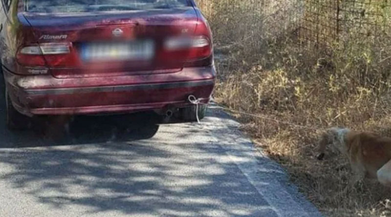 Πόσο πιο… «φιλόζωος» για να μην χρησιμοποιήσουμε κάποια βαριά έκφραση. Ο «ιδιοκτήτης» -προφανώς- του σκύλου επέλεξε να βασανίσει τον πιστό του φίλο, δένοντάς τον στο πίσω μέρος του αυτοκινήτου.