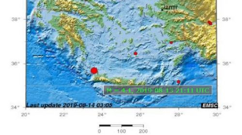 Νέα σεισμική δόνηση σημειώθηκε τη νύχτα στην Κρήτη, αυτή τη φορά στην περιοχή των Χανίων. Ο σεισμός, που υπολογίστηκε στα 4,1 Ρίχτερ, σημειώθηκε στην περιοχή των Χανίων και είχε εστιακό βάθος 10 χιλιομέτρων. Magnitude ML 4.1 Region CRETE, GREECE Date time 2019-08-13 21:11:19.6 UTC Location 35.70 N ; 23.57 E Depth 10 km Distances 253 km S of Athens, Greece…