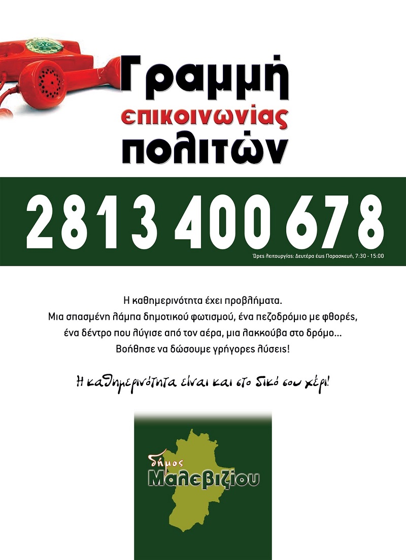 Επισυνάπτεται η αφίσα της γραμμής επικοινωνίας του δημότη του 2011