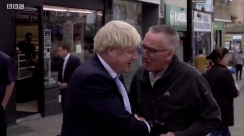 Σε βίντεο που μετέδωσε το BBC ο άνδρας διακρίνεται να πλησιάζει τον Τζόνσον και να του δίνει το χέρι, προτού του πει «σας παρακαλώ, φύγετε από την πόλη μου», χτυπώντας τον ελαφρά στην πλάτη. Ξαφνιασμένος ο συντηρητικός πρωθυπουργός γυρνά και του απαντά: «θα το κάνω πολύ σύντομα». Το σκηνικό έγινε viral στο Twitter με το hashtag #PleaseLeaveMyTown.