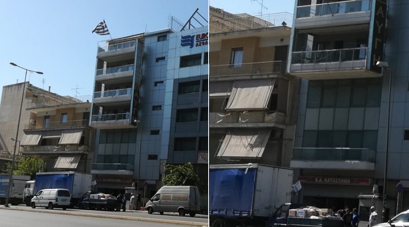Από το κτίριο αφαιρούνται σταδιακά και τα σήματα της νεοναζιστικής οργάνωσης