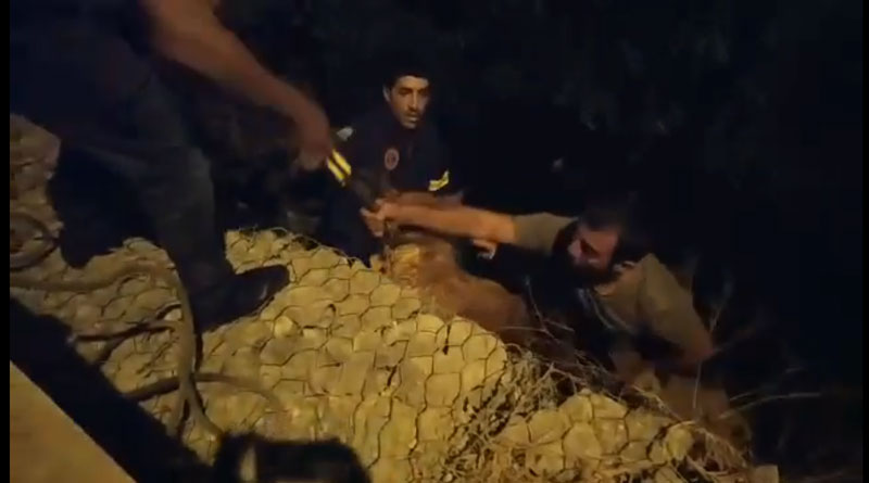 Στήθηκε επιχείρηση με τους άνδρες να κατεβαίνουν κάτω στο ποτάμι και να προσπαθούν να το δέσουν.