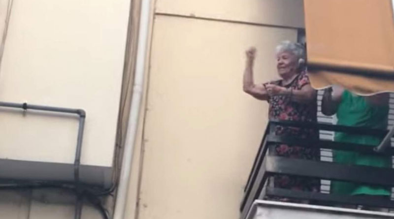 Όταν εκείνοι το αντιλήφθηκαν «ανταπέδωσαν» φωνάζοντας ακόμη πιο δυνατά τα αντιφασιστικά συνθήματα, με την ηλικιωμένη γυναίκα να υψώνει τα χέρια της με σφιγμένες τις γροθιές.