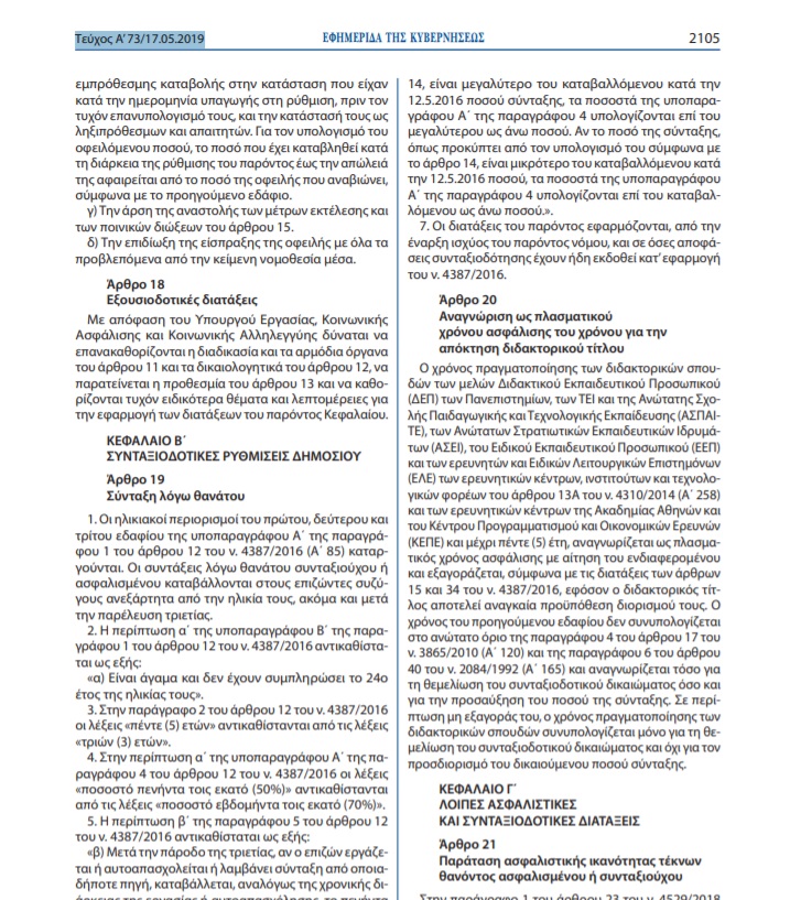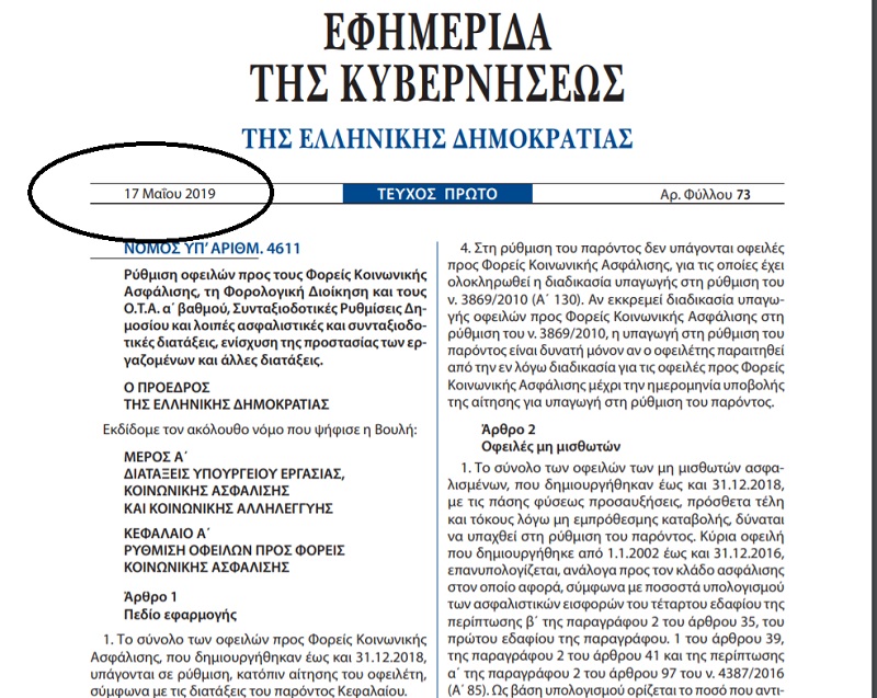 Δείτε το ΦΕΚ της 17ης Μαΐου 2019