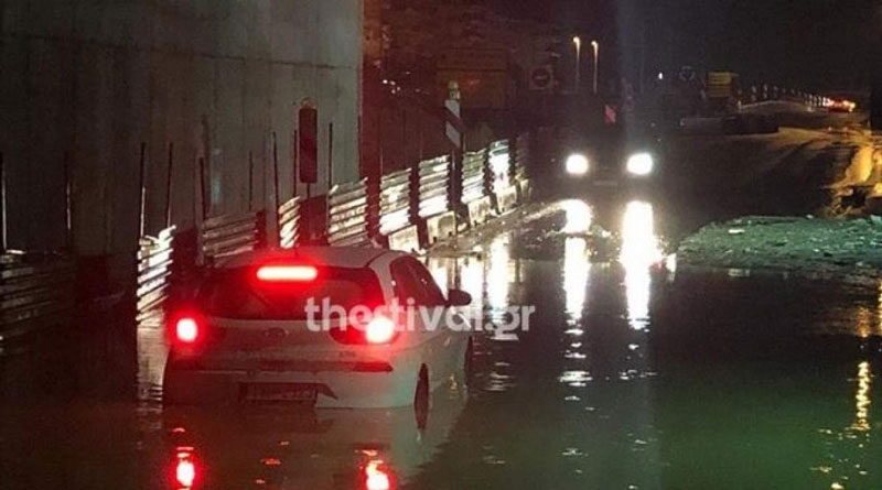 Δύο οχήματα εγκλωβίστηκαν στην Εσωτερική Περιφερειακή της Θεσσαλονίκης, στο ύψος του Ευόσμου.