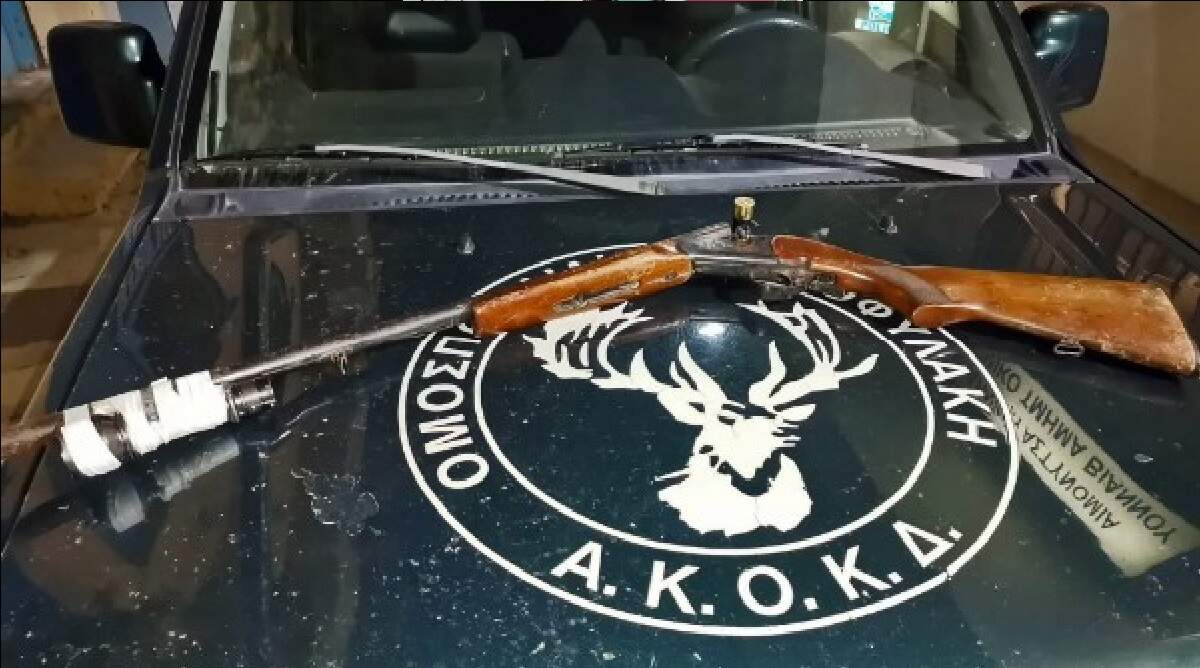 Από τον έλεγχο διαπιστώθηκαν τα 5 όπλα και 3 σκοτωμένα θηράματα.