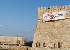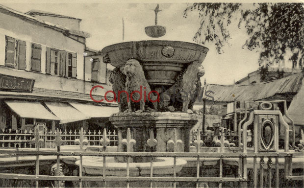 Αυτό που βλέπουμε στη φωτογραφία δεν είναι άλλο από τα… Λιοντάρια, το πιο χαρακτηριστικό μνημείο της πόλης του Ηρακλείου, κυριολεκτικά στη φυλακή! Η φωτογραφία, που εξέδωσε ο Ν. Αλικιώτης, είναι πριν από το 1900 και φαίνονται οι παρεμβάσεις αλλοίωσης που έκαναν οι οθωμανικές διοικήσεις στο μνημείο.