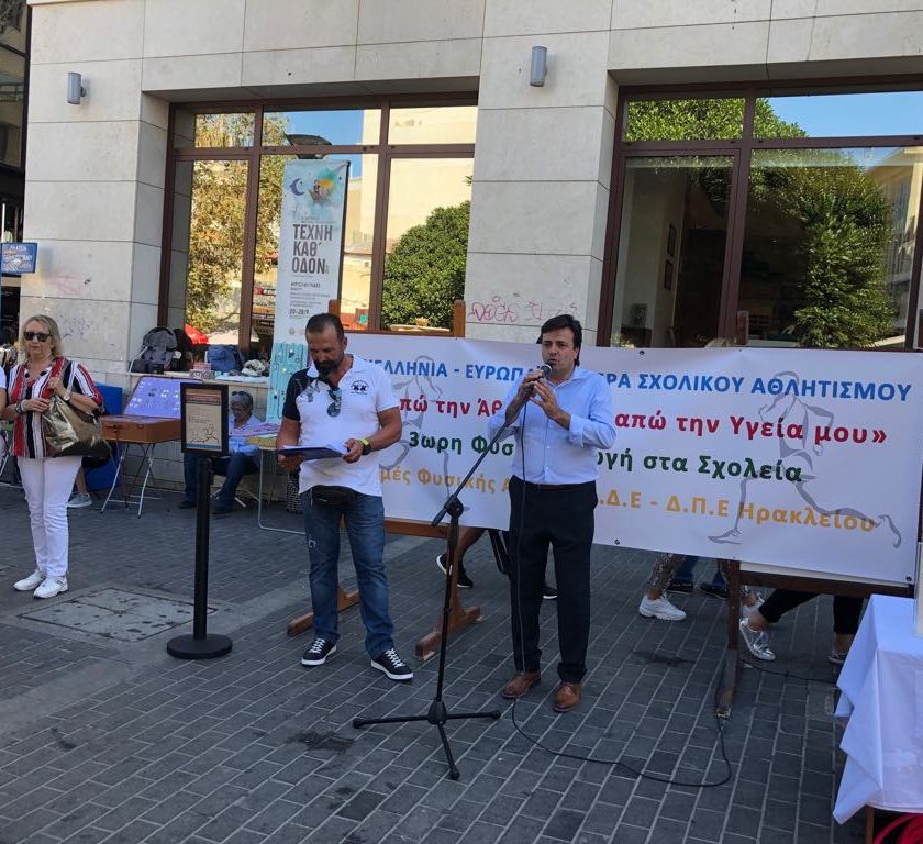 Στο πλαίσιο αυτό ο Αντιπεριφερειάρχης Ηρακλείου Νίκος Συριγωνάκης επισκέφθηκε σήμερα το 3ο Λύκειο Ηρακλείου όπου σε ειδική εκδήλωση παρουσία εκπαιδευτικών, μαθητών και γονέων παρουσιάστηκε το νέο γυμναστήριο του σχολικού συγκροτήματος. Στη συνέχεια ο Αντιπεριφερειάρχης Ηρακλείου παραβρέθηκε στην εκδήλωση «Άθληση καθ’ οδόν» που εξελίχθηκε στο κέντρο της πόλης και οργάνωσαν οι δομές φυσικής αγωγής και σχολικού αθλητισμού των ΔΠΕ και ΔΔΕ Ηρακλείου.