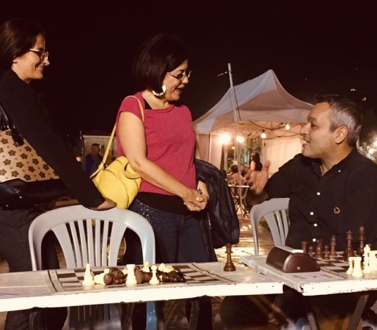 Το ίδιο βράδυ στο Φεστιβάλ, ο κ. Μαμουλάκης συνάντησε την Μαρία Πετράκη από το Ηράκλειο, πρωταθλήτρια στο σκάκι γυναικών.