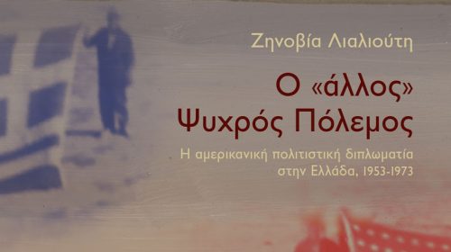 Η αμερικανική πολιτιστική διπλωματία στην Ελλάδα, 1953-1973 Κυκλοφορεί από τις Πανεπιστημιακές Εκδόσεις Κρήτης, αύριο,Τρίτη 1η Οκτωβρίου 2019, το βιβλίο Ο «άλλος» Ψυχρός Πόλεμος, της Ζηνοβίας Λιαλιούτη. Πώς μπορεί, άραγε, να προωθήσει τους στόχους της αμερικανικής εξωτερικής πολιτικής μια θεατρική παράσταση του Άρθουρ Μίλλερ στην Αθήνα; Και, αντίστροφα, πόσο ζημιώνονται οι ίδιοι στόχοι από μια εντυπωσιακή επίδειξη βιομηχανικών προϊόντων στο σοβιετικό περίπτερο της Διεθνούς Έκθεσης Θεσσαλονίκης; Αυτά…