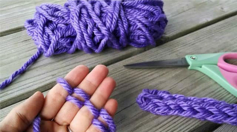Υλικά: 1 κουβάρι νήμα, κατάλληλο για πλέξιμο στα δάχτυλα και ένα ψαλίδι.