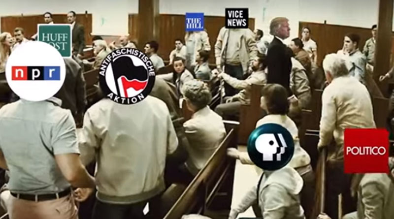 Στόχοι του προέδρου των ΗΠΑ, ο οποίος φαίνεται να μπαίνει στον υποτιθέμενο ναό «Εκκλησία των Ψευδών Ειδήσεων» οι Χίλαρι Κλίντον, Μπέρνι Σάντερς, Μπαράκ Ομπάμα, Τζον Μακέιν, όπως επίσης τα μίντια New York Times, CNN, ABC, CNBS, BBC, Guardian και Politico.