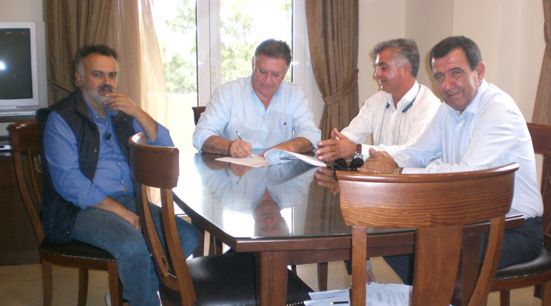 Στην υπογραφή τριών συμβάσεων που αφορούν στην προμήθεια υλικών (σκυρόδεμα, αρδευτικά υλικά) και στην εκτέλεση χωματουργικών εργασιών, για την αποκατάσταση των ζημιών σε πέντε (5) κοινότητες της Δ.Ε. Αρκαλοχωρίου – Σκινιά, Καραβάδου, Δεματίου, Καστελλιανών και Γαρίπας – που έχουν κηρυχθεί σε κατάσταση έκτακτης ανάγκης, προχώρησε το προηγούμενο διάστημα ο Δήμαρχος Μινώα Πεδιάδας κ. Μανώλης Φραγκάκης.
