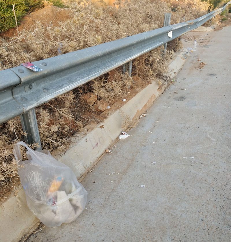 Σας στέλνω ακόμη μια φορά τα σκουπίδια που άφησαν τα συνεργεία του ΒΟΑΚ (στο νέο τμήμα στο ύψος των Αγριανων στη νότια παράλληλο της ΕΟ) που βρέθηκαν εκεί ώστε να τοποθετήσουν τα προστατευτικά κιγκλιδώματα.
