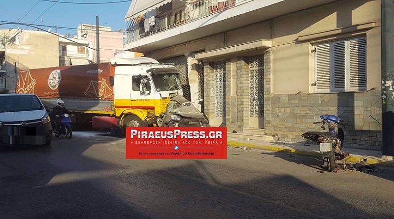 Σοκαριστικό τροχαίο στον Πειραιά: Φορτηγό διέλυσε αυτοκίνητο