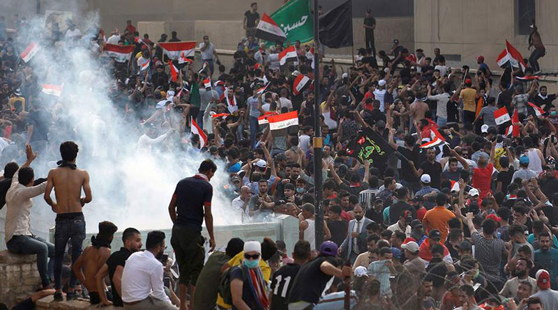 Στη Βαγδάτη, οι αστυνομικοί έκαναν χρήση δακρυγόνων στην προσπάθειά τους να διαλύσουν τα πλήθη των διαδηλωτών στην πλατεία Ταχρίρ. Τέσσερις άνθρωποι σκοτώθηκαν, αφού τους χτύπησαν δακρυγόνα στο κεφάλι, αναφέρουν οι πηγές της αστυνομίας και των νοσοκομείων. Δύο άνθρωποι νοσηλεύονται σε κρίσιμη κατάσταση με παρόμοια τραύματα.