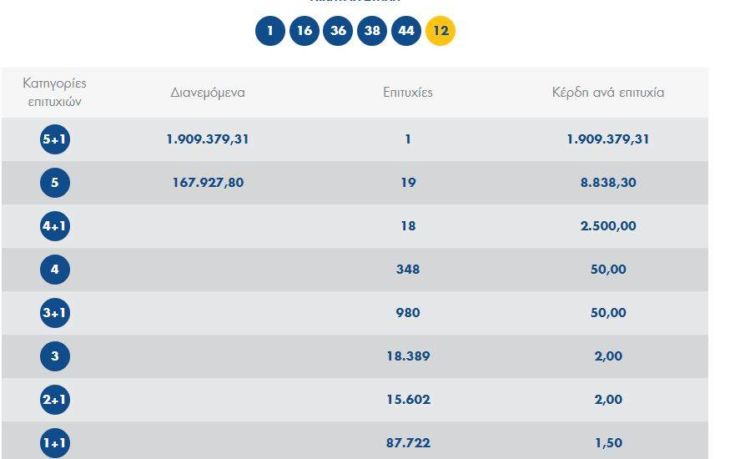 Έναν μεγάλο υπερτυχερό ανέδειξε η αποψινή κλήρωση του Τζόκερ (2067), η οποία μοίραζε τουλάχιστον 1.900.000 ευρώ στους τυχερούς της πρώτης κατηγορίας.