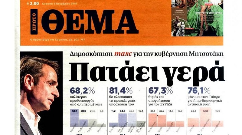Μεγάλο γκάλοπ της Marc για το «Πρώτο ΘΕΜΑ» – «Καλύτερος πρωθυπουργός απ’ ό,τι περιμέναμε» λέει για τον Κυριάκο Μητσοτάκη το 68,2% – 81,4% εκτιμά ότι η κυβέρνηση θα υλοποιήσει τις προεκλογικές της υποσχέσεις – Στις 18,1 μονάδες «εκτοξεύεται» η διαφορά στην πρόθεσδη ψήφου ανάμεσα σε ΝΔ και ΣΥΡΙΖΑ