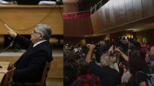 Read MoreΗ στιγμή που το ακροατήριο «ξεπροβοδίζει» τον αρχηγό των νεοναζί: «Ο Παύλος ζει, τσακίστε τους ναζί» (Βίντεο)