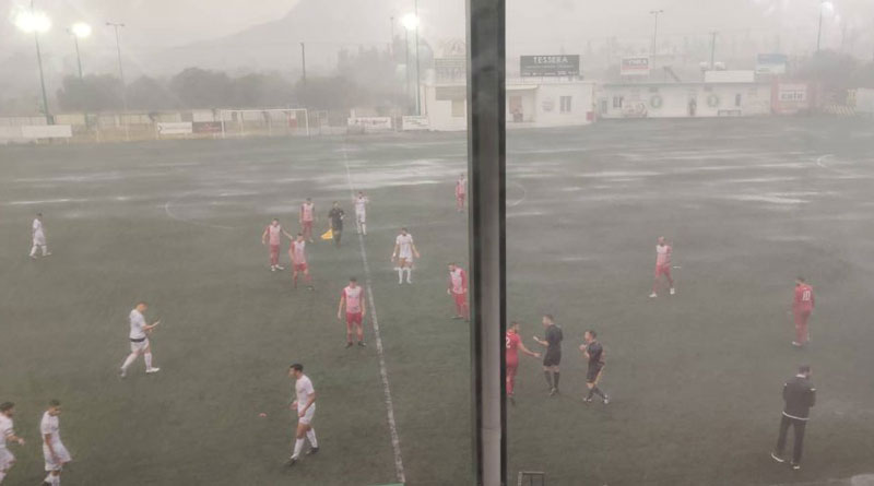 Στο γήπεδο των Μουρνιών τα πάντα πλημμύρισαν κατά τη διάρκεια του αγώνα της ΑΕΕΚ ΣΥΝΚΑ με την Επισκοπή. Το γήπεδο μετατράπηκε σε λίμνη, με συνέπεια το ματς να διακοπεί στο 76ο λεπτό για να συνεχιστεί πάντως λίγη ώρα αργότερα.
