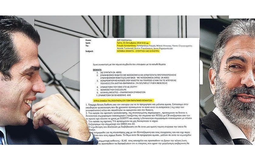 Το email της Ζ. Βοστιτσάνου έχει παραλήπτες στελέχη του ΣΦΕΕ. Μεταξύ αυτών ο τότε πρόεδρος του συνδέσμου και αντιπρόεδρος της Novartis Κωνσταντίνος Φρουζής. Η Ζ. Βοστιτσάνου ενημερώνει τα στελέχη και τη διοίκηση του ΣΦΕΕ για συνάντηση που είχε πραγματοποιηθεί με τον Θ. Πλεύρη για μια σειρά από ζητήματα που είχαν να κάνουν με το θέμα το φαρμάκου. Ειδικότερα στο email επισημαίνεται: «Εγινε συνάντηση με το νομικό σύμβουλο του υπουργού με τα κάτωθι θέματα: