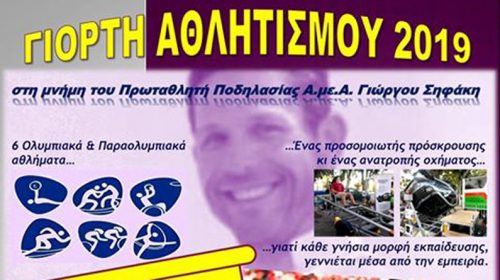 Read MoreΚαι η Βούλα Πατουλίδου στην Γιορτή Αθλητισμού 2019, στη μνήμη του Πρωταθλητή Ποδηλασίας ΑΜΕΑ, Γ. Σηφάκη