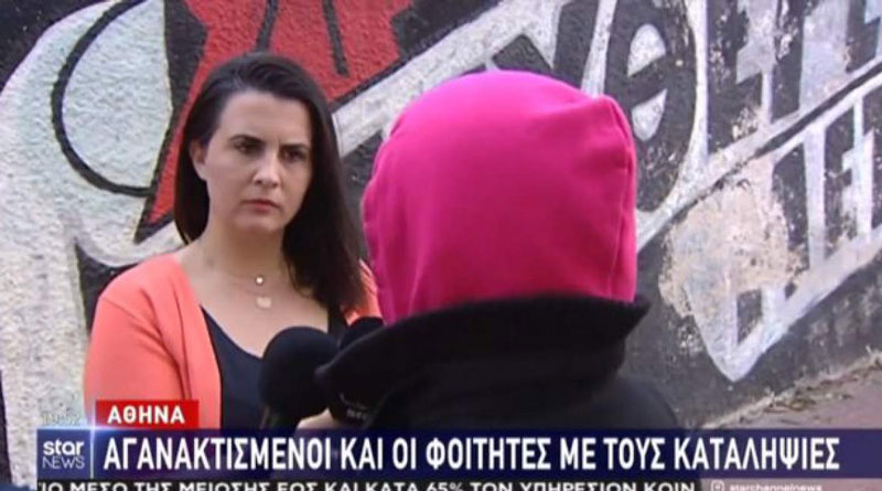 Αγανακτισμένοι και οι φοιτητές με τους καταληψίες»… η εξής μία! Με μία και την ίδια κοπέλα, που φέρει ροζ κουκούλα και με γυρισμένη την πλάτη στο φακό προσπάθησαν σχεδόν τα κανάλια να στήσουν φοβικό «κλίμα» εναντίον των φοιτητών.