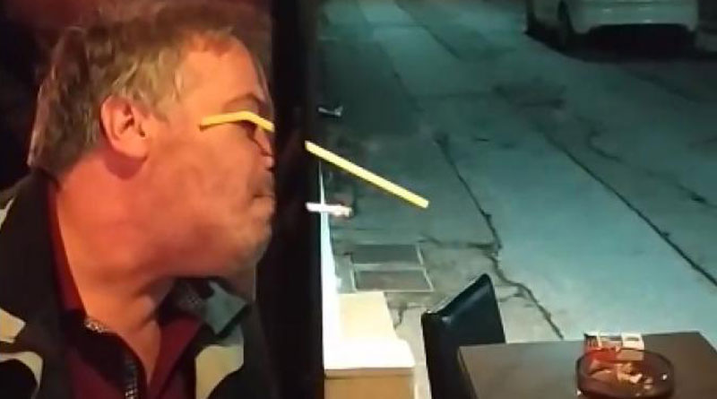 Όπως θα δείτε στο σχετικό βίντεο, βρήκε… τρόπο να καπνίσει, χωρίς να κινδυνεύει με τα πρόστιμα του αντικαπνιστικού νόμου.