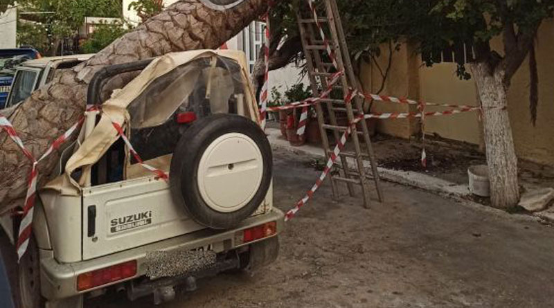 Κρήτη: Φοίνικας ξεριζώθηκε από τους δυνατούς ανέμους και έπεσε σε αυτοκίνητο (Φωτο)
