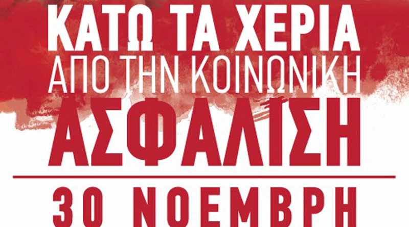 Τα σωματεία μας, μπροστά στα οξυμένα προβλήματα στο χώρο της υγείας πρόνοιας και στην νέα αντιασφαλιστική επίθεση που έχει προαναγγείλει η κυβέρνηση καλούμε στη βάση της απόφασης της Συντονιστικής Επιτροπής Αγώνα των Συνεργαζόμενων Συνταξιουχικών Οργανώσεων, σωματεία, εργαζόμενους, όλο το λαό, σε Συλλαλητήριο, το Σάββατο 30 Νοέμβρη, 11πμ στην Πλατεία Ελευθερίας.