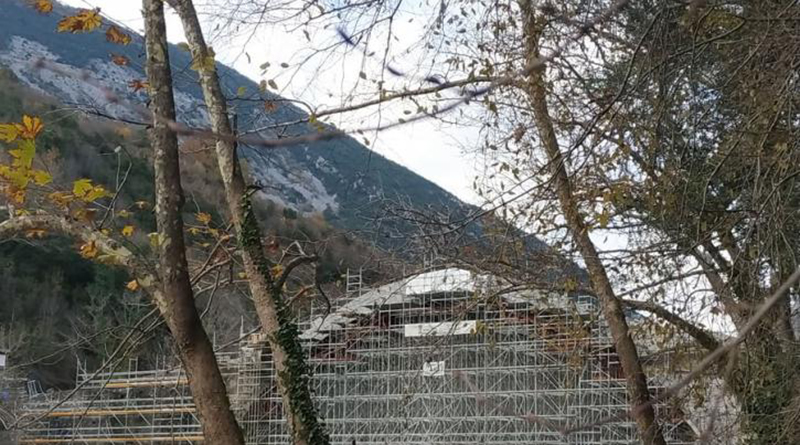 Πριν δύο ημέρες μπήκε και ο τελευταίος θολίτης, η πέτρα δηλαδή που δένει τις δύο πλευρές του τόξου, της καμάρας, η οποία άρχισε να ξανακτίζεται παράλληλα και από τα δύο βάθρα.