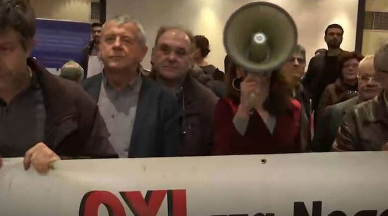 Οι συγκεντρωμένοι δηλώνουν ότι δεν θα φύγουν από το Ζάππειο, εάν δεν αποχωρήσουν οι συμμετέχοντες στο συνέδριο.