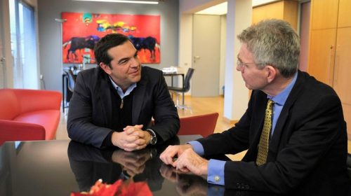 Ο πρόεδρος του ΣΥΡΙΖΑ, Αλέξης Τσίπρας, συναντήθηκε το πρωί της Τετάρτης με τον πρέσβη των ΗΠΑ στην Ελλάδα, Τζέφρι Πάιατ. Οι δύο άνδρες έθεσαν στο «τραπέζι» θέματα όπως οι ελληνοαμερικανικές σχέσεις, η συνεργασία με το Ισραήλ και την Κύπρο, αλλά και τις εξελίξεις στην ανατολική Μεσόγειο. Ο Αλέξης Τσίπρας σημείωσε τα εξής στην ανάρτησή του στα social media με αφορμή…