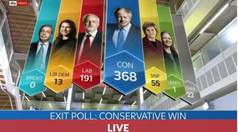 Μεγάλη πλειοψηφία με 368 έδρες φαίνεται να εξασφαλίζει το Συντηρητικό Κόμμα υπό τον Μπόρις Τζόνσον έναντι 191 των Εργατικών του Τζέρεμι Κόρμπιν