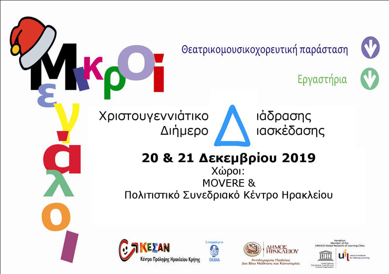 *Η παρουσίαση του Χριστουγεννιάτικου Εργαστηρίου Θεάτρου – Μουσικής – Χορού θα γίνει στο Πολιτιστικό Συνεδριακοί Κέντρο Ηρακλείου.